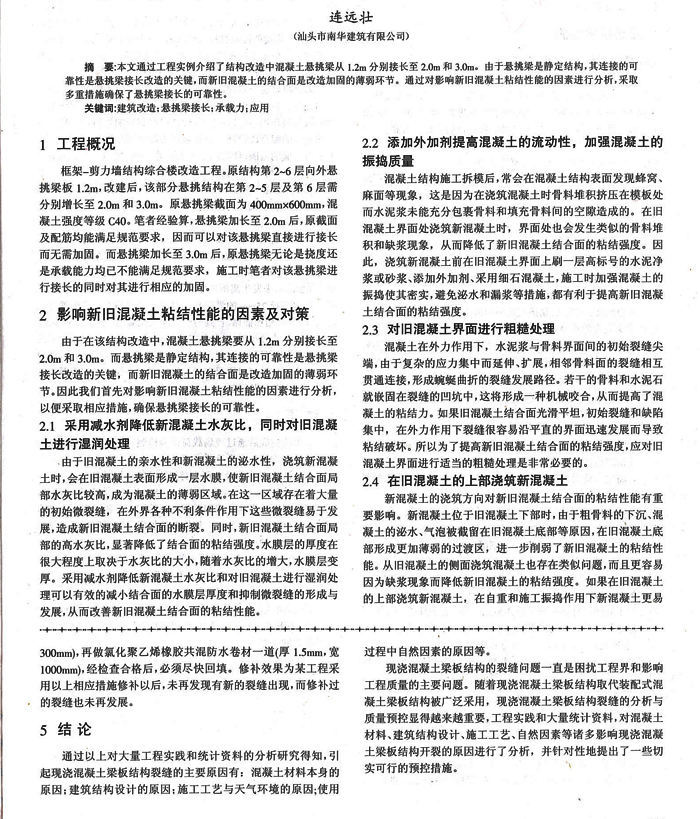 論懸挑梁接長在建筑混凝土中的應用(連遠壯)