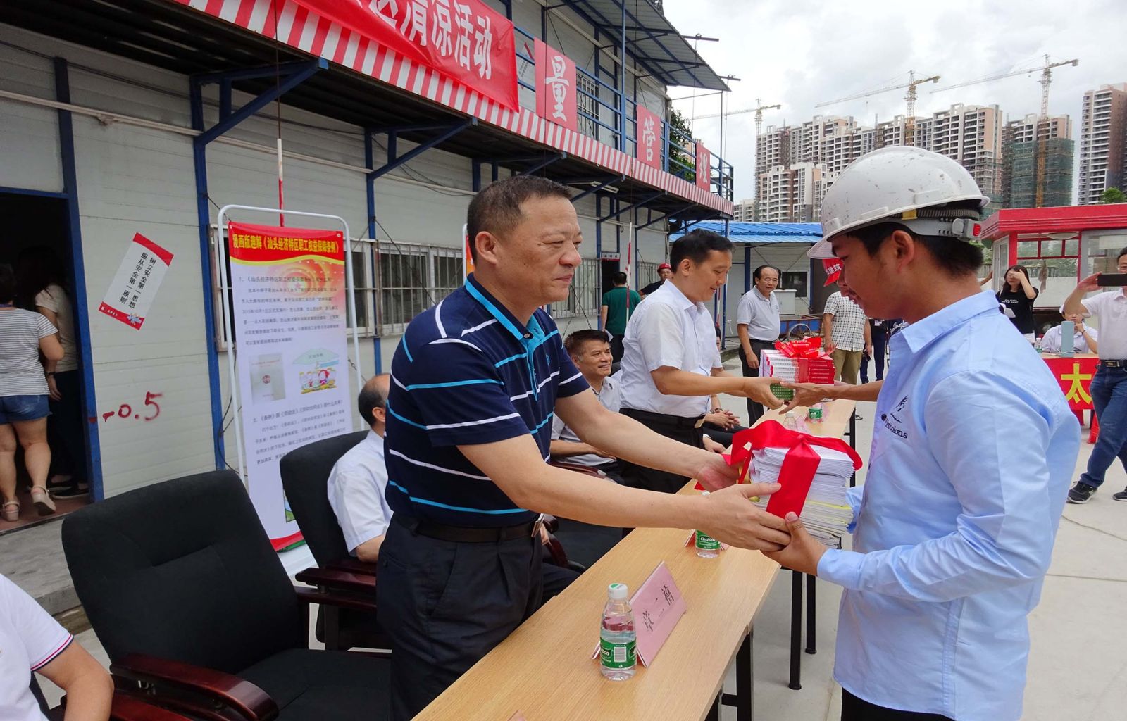 汕頭市人大常委委會副主任、汕頭市總工會主席王揚澤同志,汕頭市總工會黨組成員、副調(diào)研員章二禧同志,金平區(qū)人大常委副主任、金平區(qū)委副書記陳斌同志、區(qū)總工會主席蘇純同志、汕頭市總工會法律工作部部長王曉南同志等領(lǐng)導(dǎo)以及公司董事長林錦平來到建設(shè)項目施工現(xiàn)場,親切關(guān)懷和了解施工人員的工作生活情況,再三叮囑他們在夏季高溫時段工作時一定要注意作業(yè)安全,預(yù)防中暑,并將清涼飲料以及法律書籍送到他們手中,對他們付出的辛勤勞動表示感謝和慰問。