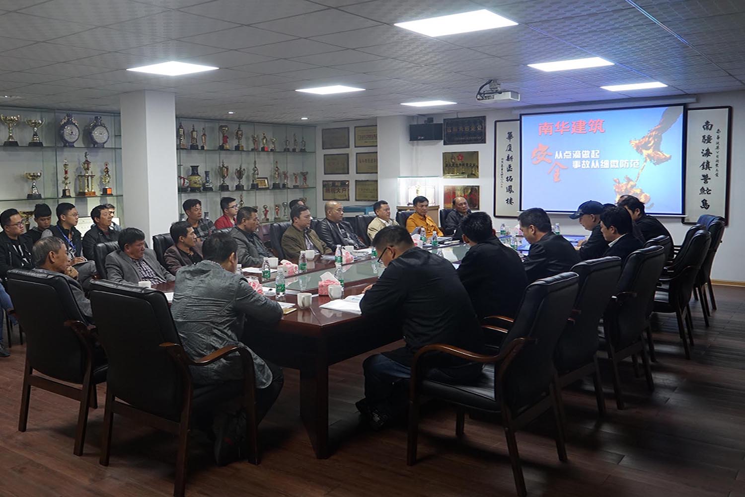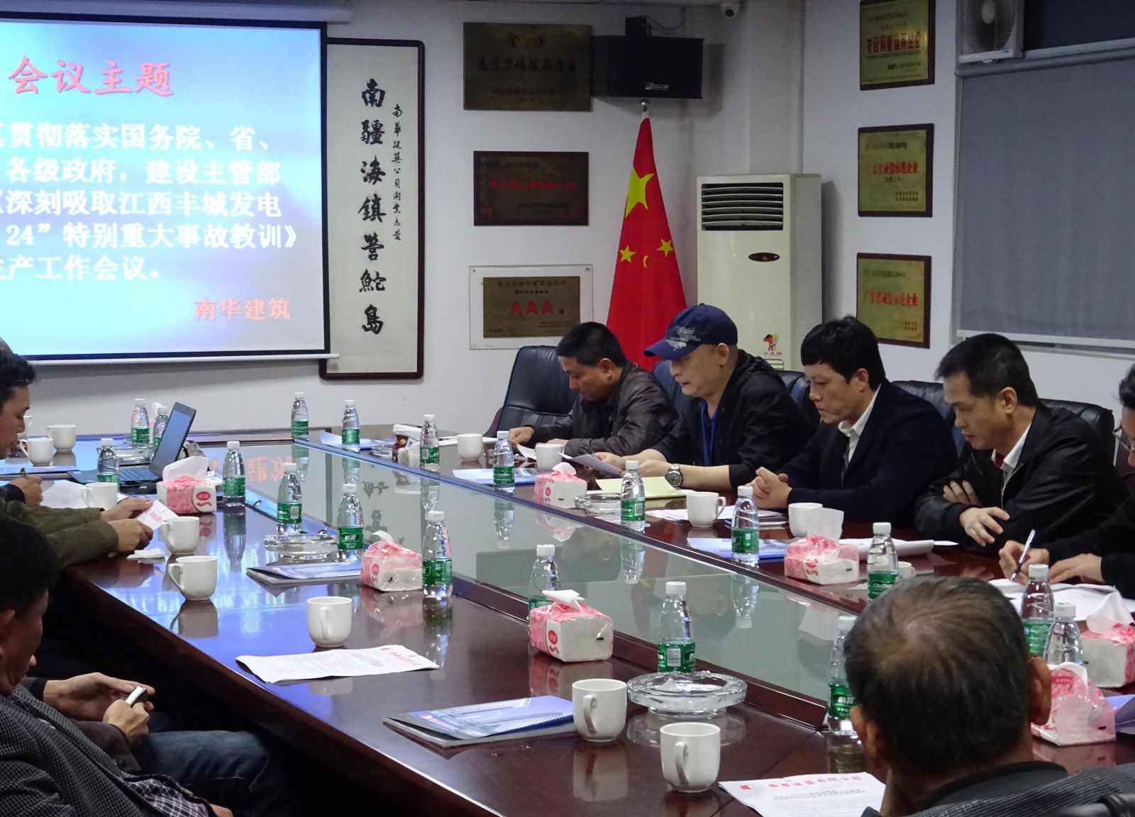 11月29日,公司組織公司職員、在建項(xiàng)目部負(fù)責(zé)人以及相關(guān)人員在公司會議廳召開安全生產(chǎn)緊急會議,認(rèn)真貫徹落實(shí)國務(wù)院、省、市、區(qū)、各級政府安全生產(chǎn)工作緊急視頻會議精神、建設(shè)主管部門關(guān)于《深刻吸取江西豐城發(fā)電廠“11.24”特別重大事故教訓(xùn)》文件精神。會議上,公司部門負(fù)責(zé)人對承建的在建項(xiàng)目的安全及進(jìn)度情況進(jìn)行匯報(bào),分析工程施工上需嚴(yán)格加強(qiáng)防范的各個(gè)重大危險(xiǎn)源,指導(dǎo)安全生產(chǎn)技術(shù)措施,提出具體安全安排措施,要求各項(xiàng)目按照以下要求切實(shí)抓好公司安全生產(chǎn)工作: