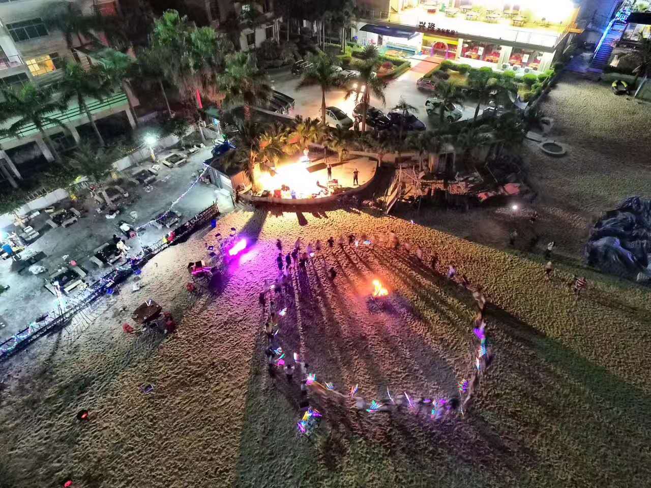 金銀灘沙灘,欣賞海上落日的美景,在沙灘上享用美味的燒烤晚餐,并舉行煙花篝火晚會(huì),大家圍著篝火歡快舞蹈。晚會(huì)中進(jìn)行了拔河比賽,大家分組對陣,摩拳擦掌,熱情高昂,齊心協(xié)力為自己的團(tuán)隊(duì)爭光,吶喊助威的聲音此起彼伏,引得旁人駐足觀看,齊聲為我們的團(tuán)結(jié)精神喝彩。此外還有兩人三足、踩氣球等游戲項(xiàng)目,大家踴躍參與,玩得不亦樂乎。