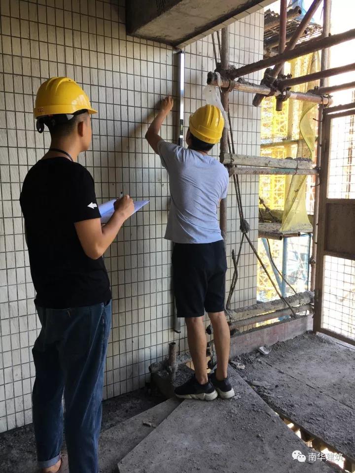但實測中也發(fā)現(xiàn)部分外墻飾面磚在原腳手架拉結(jié)點位置平整度個別較大,部分外墻飾面磚立面垂直度超出允許偏差較大,及部分內(nèi)墻抹灰平整度超出允許偏差較大,需引起重視及時改正。