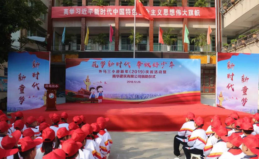 2019年的鐘聲敲響,金鼓朗朗,春潮澎湃,新年涌動(dòng)著美妙的旋律和絢麗的色彩。在這美好的日子里,汕頭市外馬路第三小學(xué)“筑夢(mèng)新時(shí)代 爭(zhēng)做好少年”迎新年慶?;顒?dòng)暨南華建筑有限公司捐助儀式在大家的翹首期盼中如期舉行。