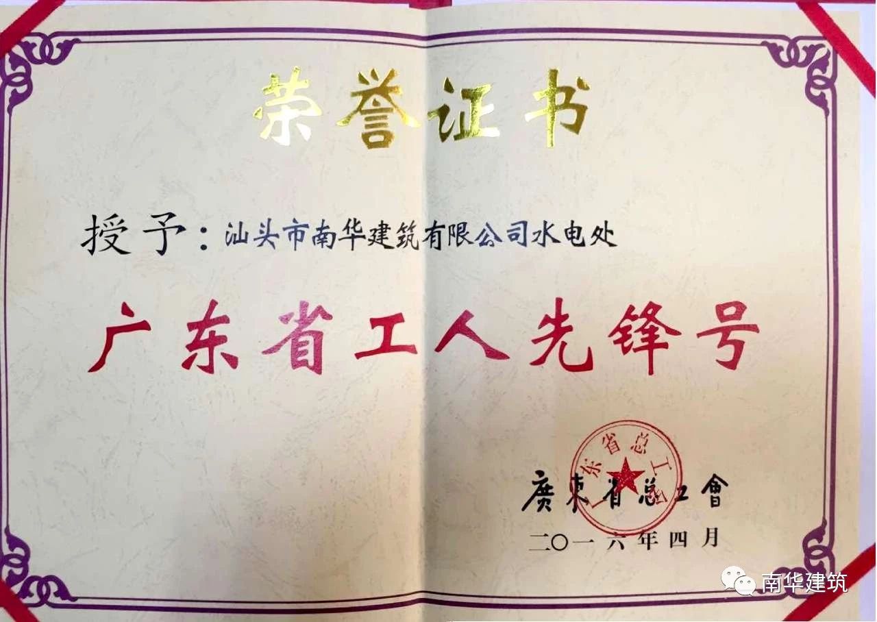 公司水電處是一支年富力強、團結(jié)拼搏、開拓進取、敢打硬仗的團隊。是公司的先進單位,一直秉承“科學管理、創(chuàng)時代精品;誠信服務(wù)、讓客戶滿意”的質(zhì)量方針與“以質(zhì)取勝、信守合同”的企業(yè)精神,以精細化管理規(guī)范自己,以標準化建設(shè)要求自己,團結(jié)奮進,銳意改革,狠抓質(zhì)量與優(yōu)質(zhì)服務(wù),高效完成各項生產(chǎn)工作任務(wù)。2016年,被廣東省總工會授予“廣東省工人先鋒號”光榮稱號。