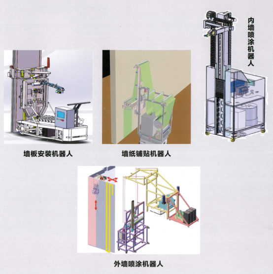 在墻面施工上,噴涂機器人取得成果較高。在通過墻板安裝機器人將墻板放置指點位置安裝后,需克服溫度、濕度、風力、噴射強度等多種因素,完成底漆、中涂漆、面漆的均勻全自動噴涂作業(yè)。