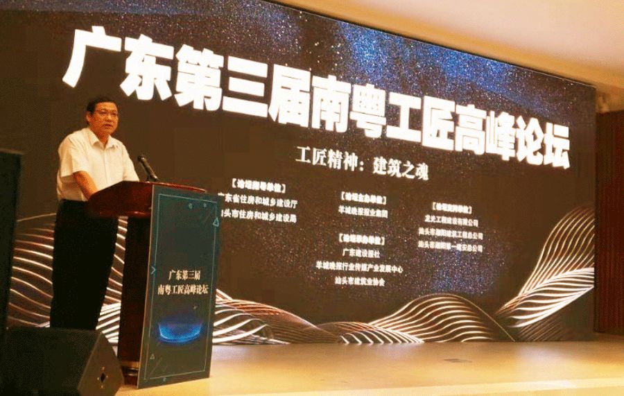“三,二,一!”隨著現(xiàn)場(chǎng)倒數(shù)最后一刻,大屏幕上的光束匯聚出“匠心”兩個(gè)金光燦燦的巨幅畫面——7月12日上午第三屆廣東“南粵工匠”高峰論壇在汕頭舉行,此次論壇是在深入開(kāi)展“不忘初心、牢記使命”主題教育活動(dòng)之際舉辦的一次盛會(huì),論壇的主題為“工匠精神:建筑之魂”。