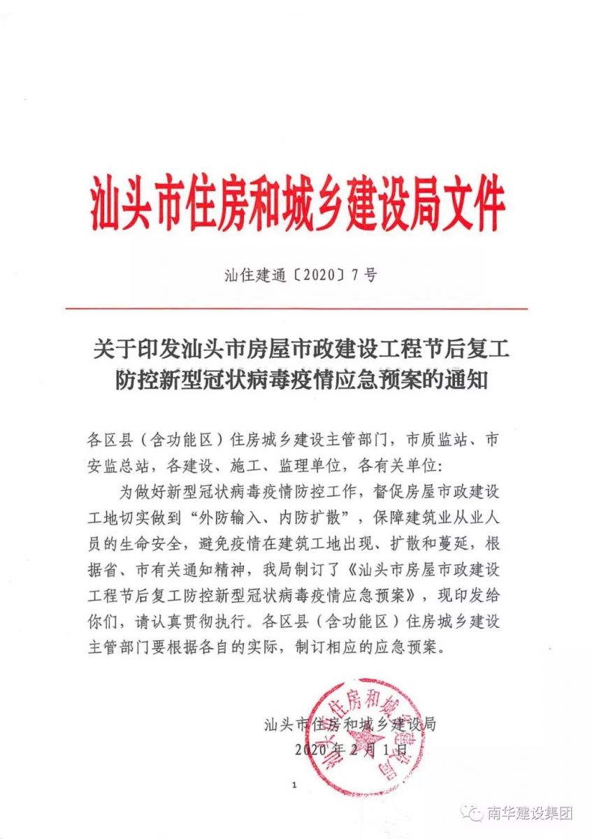 關(guān)于印發(fā)汕頭市房屋市政建設(shè)工程節(jié)后復(fù)工防控新型冠狀病毒疫情應(yīng)急預(yù)案的通知