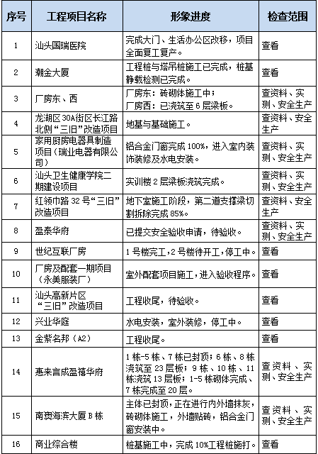 本次公司季度重點檢查,安全生產(chǎn)文明施工措施落實情況。一、投入施工的起重機械的檢查和維修保養(yǎng)情況;二、卸料平臺穩(wěn)定性和臨邊、洞口的安全防護情況;三、深基坑、高支模、外腳手架、施工用電和其他危險性較大分部分項工程的安全防護和監(jiān)管情況;四、文明施工,加強“6個100%”的落實情況。針對個別項目存在一些安全隱患,已書面開具檢查記錄表,并要求有關項目部對其存在問題限期整改,希望有關項目負責人予以高度重視,組織人員及時整改,消除隱患,集團公司也將及時進行復查,確保施工安全。