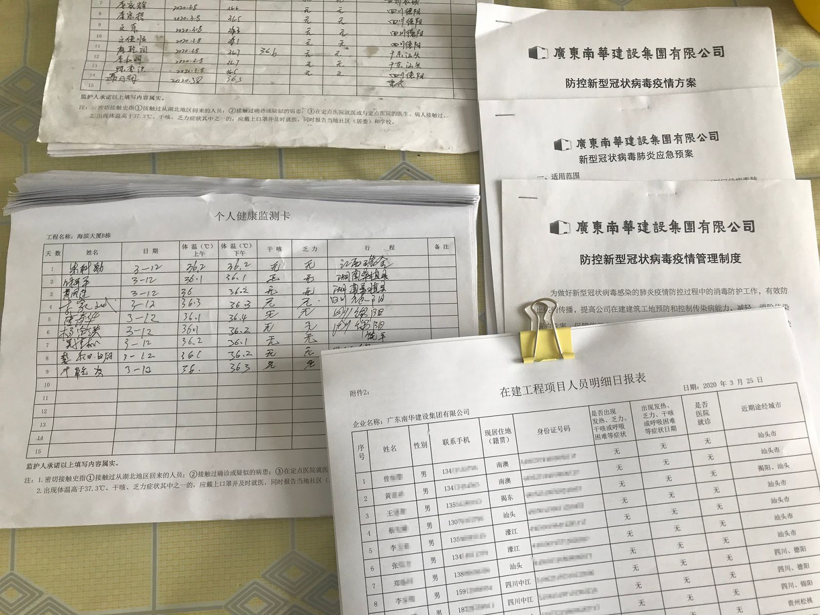 為深入貫徹落實習近平總書記關于堅決打贏新型冠狀病毒肺炎疫情防控和安全生產(chǎn)形勢穩(wěn)定可控,最大程度減少新型冠狀病毒對工人健康造成的危害,加快推進房屋市政工程項目科學有序復工復產(chǎn),集團公司根據(jù)上級部門的相關文件和《廣東省人民政府關于全力支持企業(yè)復工復產(chǎn)的通知》精神,建立健全了疫情防控管理體系,制定下發(fā)了《廣東南華建設集團有限公司復工復產(chǎn)應對新型冠狀病毒工作指引》到各項目部,要求各項目部認真執(zhí)行,項目管理人員要到位落實防控措施,組織開展防控工作,對工作場所進行全面衛(wèi)生消毒,各責任主體要按照防疫要求,落實環(huán)境消毒制度,做好個人衛(wèi)生防護和生活垃圾裝袋清理,消除鼠、蚊、蠅等病媒生物孽生環(huán)境,加快推進各在建工程項目有序復工。