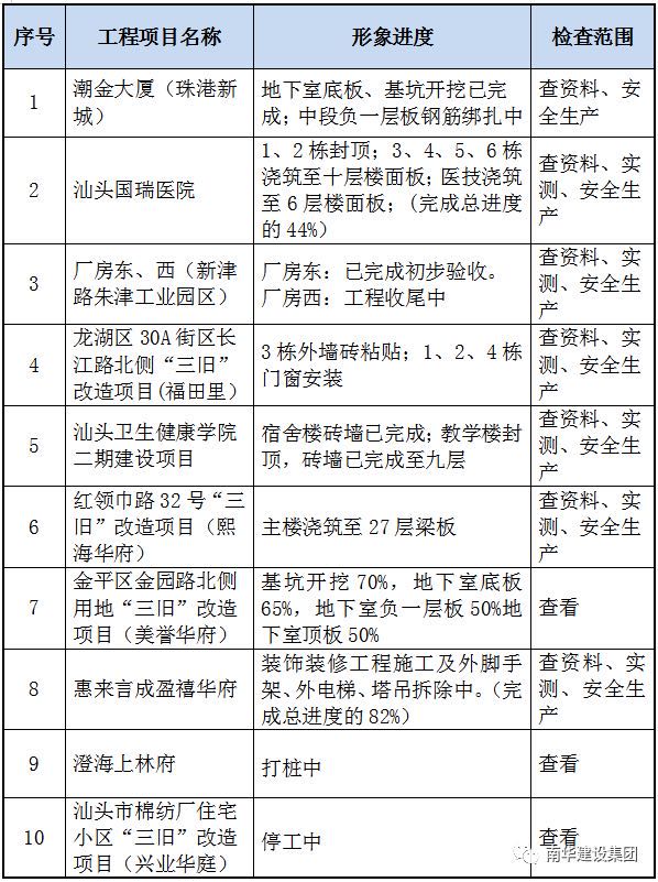 為深入貫徹習(xí)近平總書記關(guān)于安全生產(chǎn)的重要論述和重要批示指示精神,認(rèn)真落實(shí)省住建廳、市委、市政府工作部署,扎實(shí)開展全市房屋市政工程“安全生產(chǎn)檢查月”及安全隱患集中排查整治工作,進(jìn)一步提升我市房屋市政工程安全管理水平和能力,根據(jù)《廣東省住房和城鄉(xiāng)建設(shè)廳關(guān)于印發(fā)<2020 年度全省房屋市政工程安全隱患集中排查整治工作實(shí)施方案>的通知》、《汕頭市安委辦關(guān)于轉(zhuǎn)發(fā)省安委會(huì)印發(fā)的安全生產(chǎn)領(lǐng)域八大專項(xiàng)整治方案的通知》精神,集團(tuán)公司決定從10月份起至2020年底對(duì)公司在建工程開展房屋市政工程“安全生產(chǎn)檢查月”及安全隱患集中排查整治工作專項(xiàng)檢查。