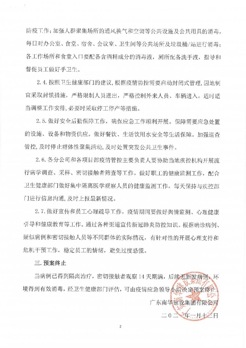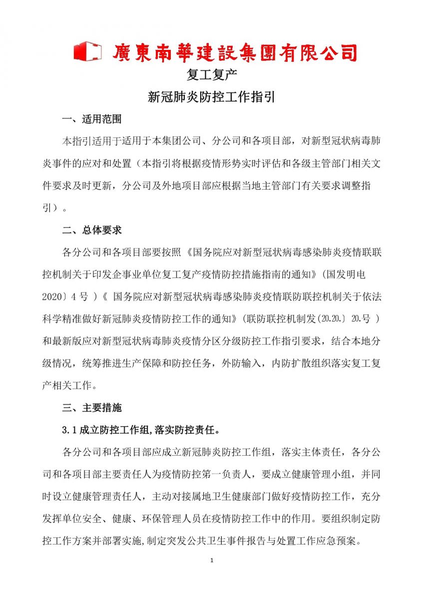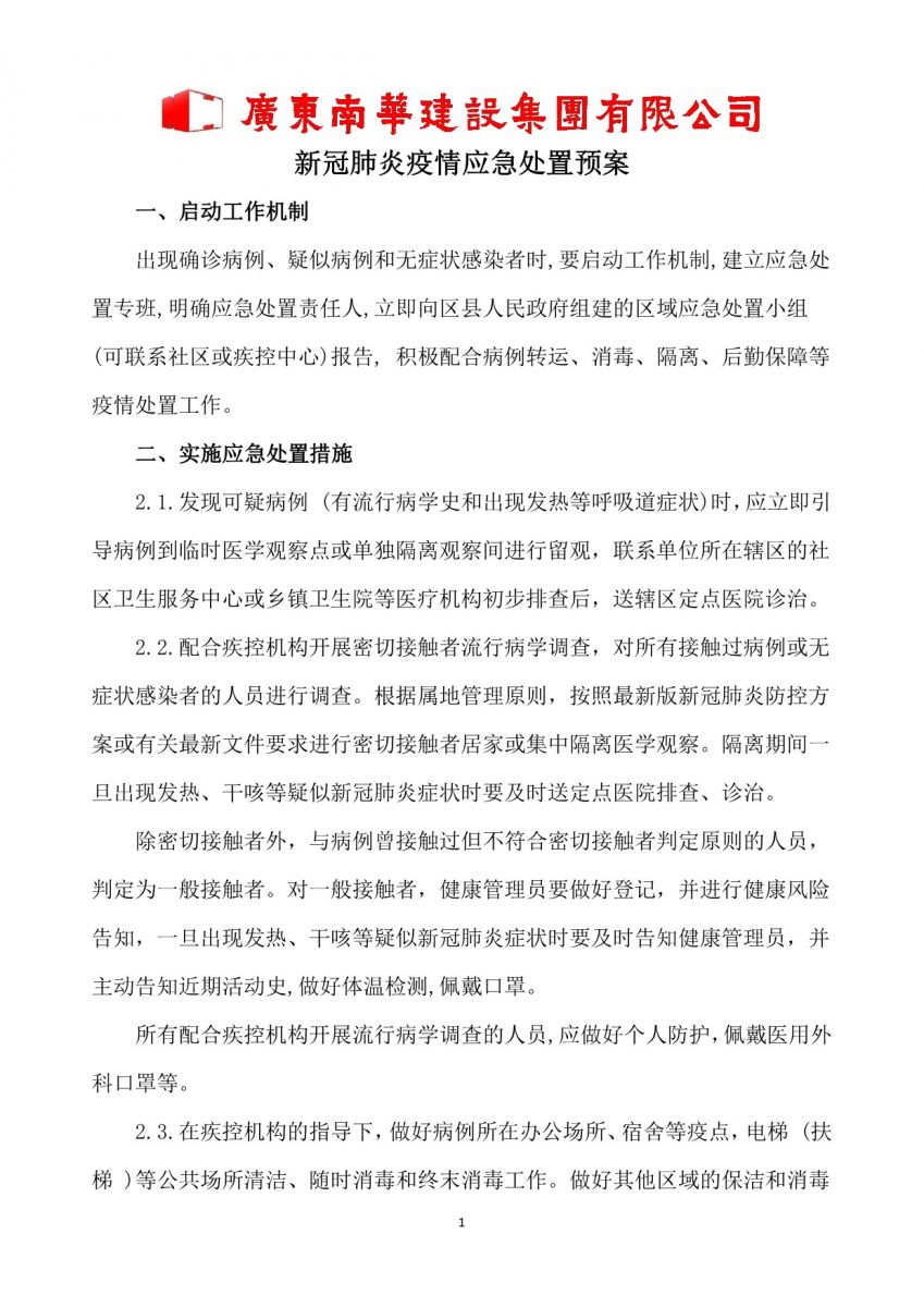南華建設(shè)集團(tuán)《復(fù)工復(fù)產(chǎn)新冠肺炎防控工作指引》《新冠肺炎疫情應(yīng)急處置方案》
