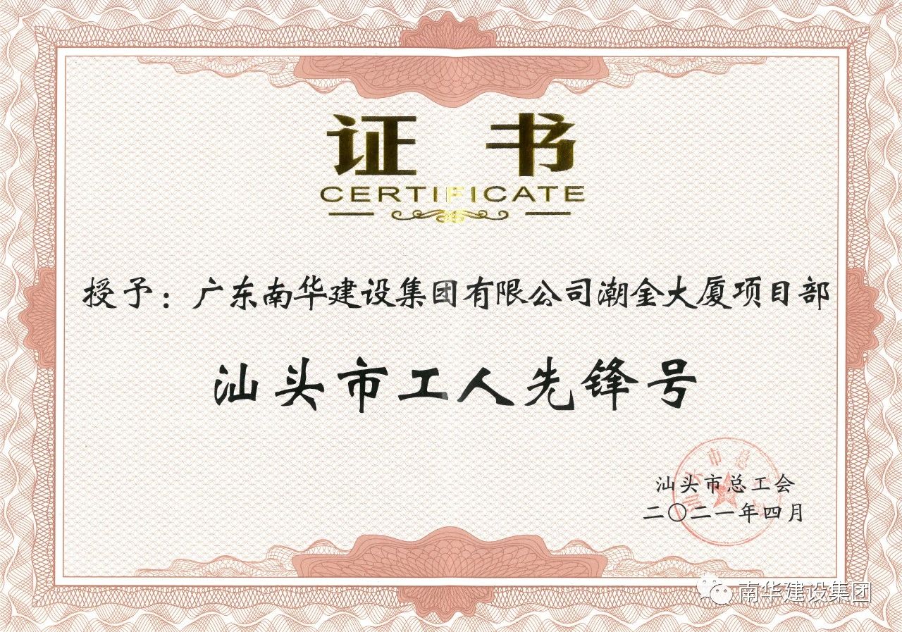 “五一”國(guó)際勞動(dòng)節(jié)來(lái)臨之際,4月30日下午,市委市政府在市委會(huì)議中心大會(huì)堂召開(kāi)汕頭市慶祝“五一”國(guó)際勞動(dòng)節(jié)大會(huì)。南華建設(shè)集團(tuán)“潮金大廈項(xiàng)目部”榮獲汕頭市 “工人先鋒號(hào)”稱(chēng)號(hào)!潮金大廈項(xiàng)目部在公司領(lǐng)導(dǎo)班子和公司工會(huì)的帶領(lǐng)下,一直秉承“科學(xué)管理、創(chuàng)時(shí)代精品;誠(chéng)信服務(wù)、讓客戶讓客戶滿意”的質(zhì)量方針與“以質(zhì)取勝、信守合同”的企業(yè)精神,以精細(xì)化管理規(guī)范自己,以標(biāo)準(zhǔn)化建設(shè)要求自己,團(tuán)結(jié)奮進(jìn),銳意改革,狠抓建筑質(zhì)量與優(yōu)質(zhì)服務(wù),高效完成各項(xiàng)生產(chǎn)工作任務(wù)。2020年2月獲“汕頭市合格職工之家”稱(chēng)號(hào),2020年7月獲“汕頭市金平區(qū)先進(jìn)集體”稱(chēng)號(hào)。