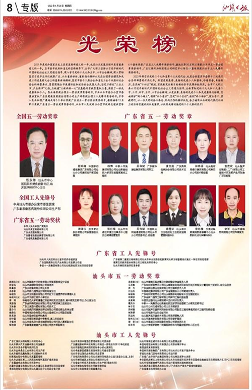 4月28日,2022年廣東省慶祝“五一”國(guó)際勞動(dòng)節(jié)暨勞模表彰大會(huì)在廣州舉行,市設(shè)分會(huì)場(chǎng)在市委會(huì)議中心舉行。會(huì)議對(duì)獲得廣東省五一勞動(dòng)獎(jiǎng)狀、五一勞動(dòng)獎(jiǎng)?wù)?、工人先鋒號(hào)的單位及個(gè)人進(jìn)行表彰。集團(tuán)公司吳和斌同志榮獲廣東省五一勞動(dòng)獎(jiǎng)?wù)隆?/span>