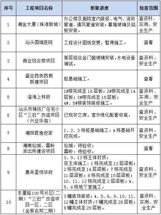 根據(jù)《汕頭市建筑工地腳手架工程專項整治工作方案》的要求,集團公司對在建項目腳手架工程進行了專項檢查,各在項目腳手架工程均能按規(guī)范及施工方案搭設,臨邊防護及外架與建筑物之間水平防護均能按規(guī)范做好相關(guān)防護措施,防護安全網(wǎng)及扣件均能按要求檢測,檢測結(jié)果均合格方可使用,對于檢查過程中發(fā)現(xiàn)的個別安全隱患已要求相關(guān)項目落實整改責任人、確定整改措施予以及整改。在《全省安全生產(chǎn)專家飛行檢查的通知》及《廣東省城鄉(xiāng)住房建設廳巡查組抽查房屋市政安全專項檢查》的抽查過程中均受到上級部門的認可,也指出了項目管理的不足,我們將專家檢查意見匯總后落實到所有各在建項目進行自查補漏。