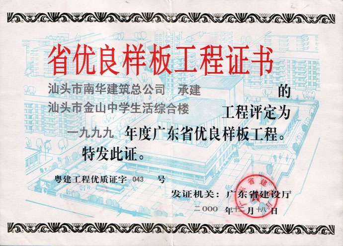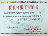 汕頭大學(xué)教學(xué)實(shí)驗(yàn)樓 省優(yōu)良證書