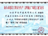 中國乒乓球汕頭基地雙優(yōu)工地證書