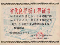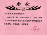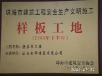 珠海市樣板工地證書