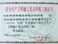 汕頭深水港省雙優(yōu)工地證書