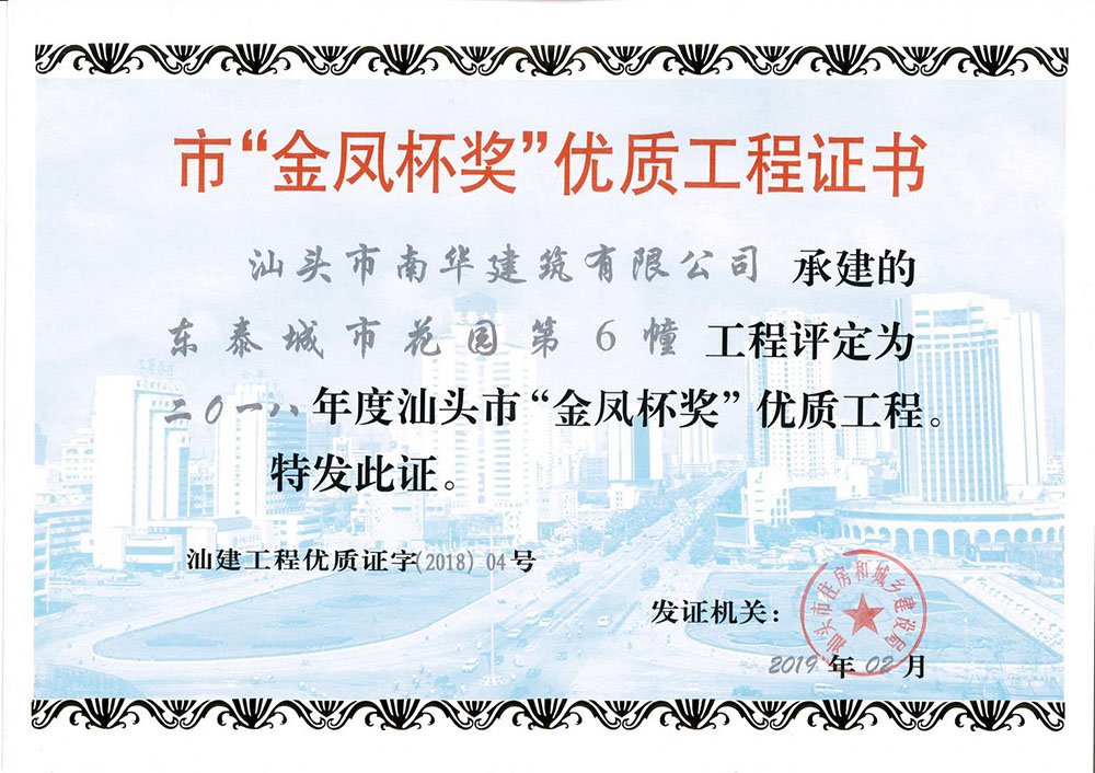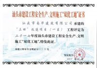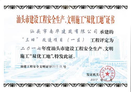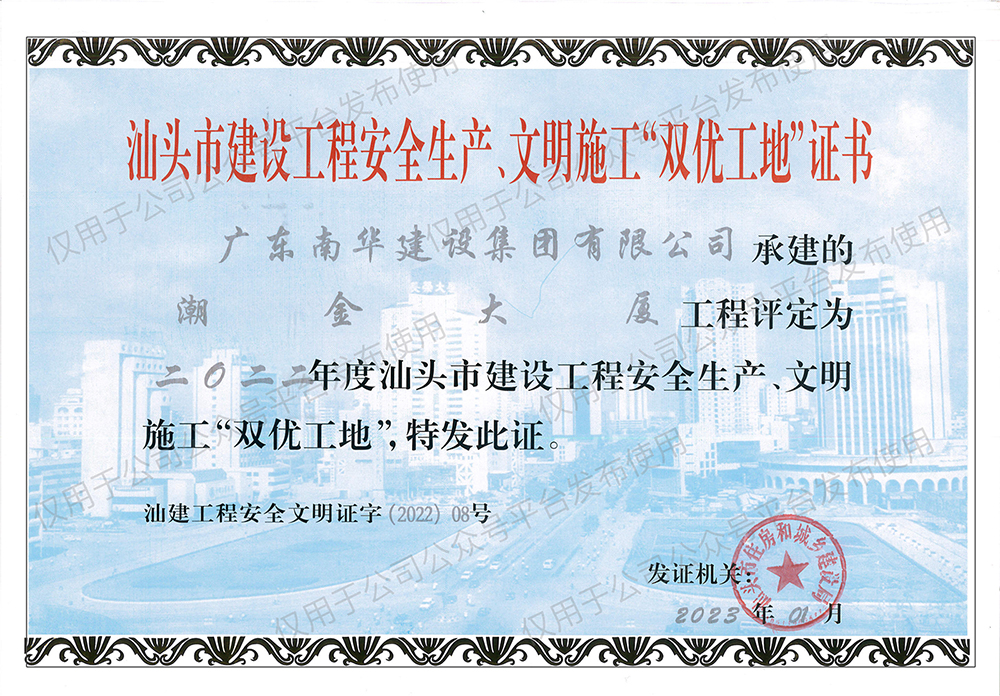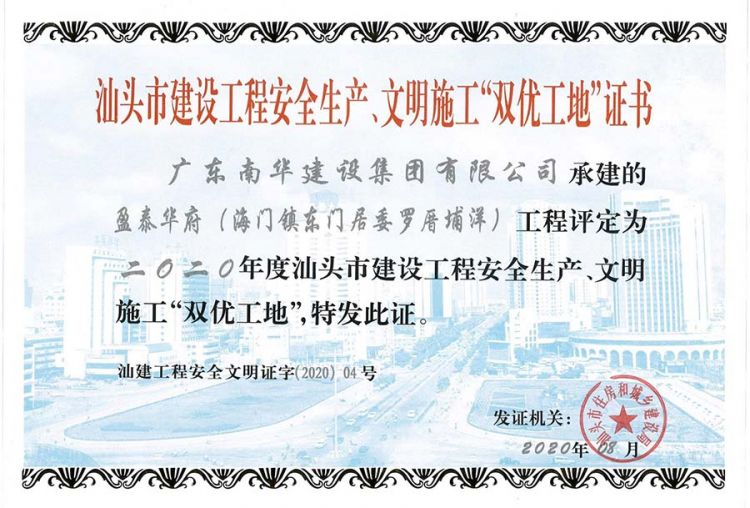 中信濱江熙岸一期雙優(yōu)工地獎狀